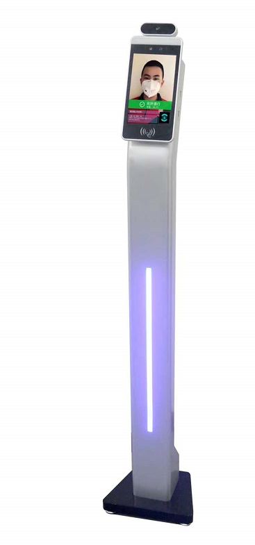 立式斜面支柱底座(1.3米高度) 基本参数: 1.底座支柱高度1315mm(不含设备)、占地280*210mm 2.底座具备2个USB接口 3.带蓝色装饰灯带 4.底座具备调节螺丝 5.材料冷轧钣金 6.绿色环保烤漆