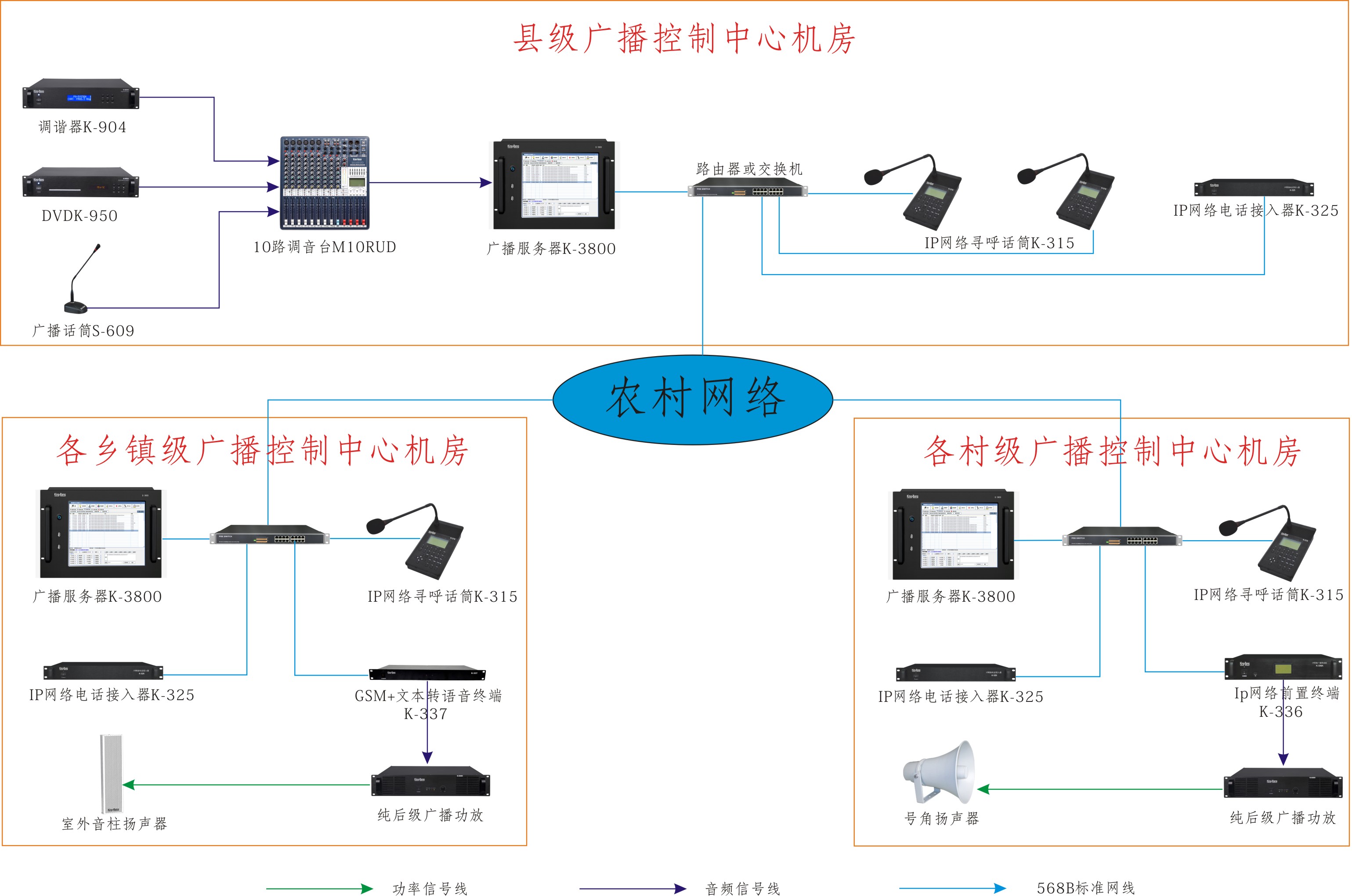 传统的广播,普遍采用定压音频或调频方式。音频广播受到电压、功率、阻抗衰减等因素影响,传输距离短,频率低,容易受干扰,系统扩展性差。调频广播在调制解调中容易引入噪声,频点偏移也会导致信号失真。基于音频和调频传输的可控制的智能广播,受传输方式的限制,也只能以分区、分组的方式实现控制。缺乏独立的节目源,导致广播终端不能满足个性化的应用需求。而网络广播,可以基于现有的或在建的LAN/WAN网络来建设。基于IP网络的节目传送,每个广播点都可以有各自独立的广播节目。