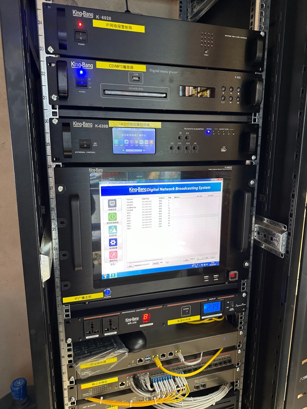 根据用户需求,配置了15英寸IP网络触屏广播服务器(支持多种音乐播放模式,如USB热插播、硬盘)、4.3英寸IP网络机架编码器(触屏版)内置自定义8个快捷按键,每个按键可定义中文名字为广播喊话、双向对讲、及文件广播等应用,DVD/MP3播放器(微电脑控制,轻触式按键操作),16路网络报警矩阵(系统可支持多台IP网络消防采集器同时接入,用户可根据自己的需求任意扩展),8路20A多功能时序器(芯片控制,使电路更加稳定可靠),大功率室外防水音柱扬声器等广播设备(适用于大型广场、操场、公园、体育馆、高速公路、高铁、地铁等场所进行远程扩音,可用来应急广播和播放背景音乐)。让整套系统使用效果更佳,使用更加方便。