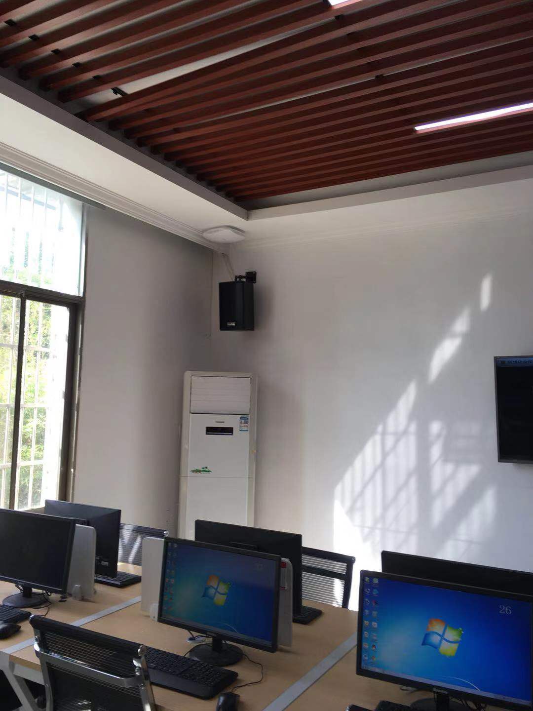 音箱选用F系列专业音箱一对,该款专业音箱低音弹性好,力度足,人声频带宽、中高音清晰亮度好,适合多媒体教室内黑板两侧壁挂式安装,造型典雅别致,与教室环境完美融合。