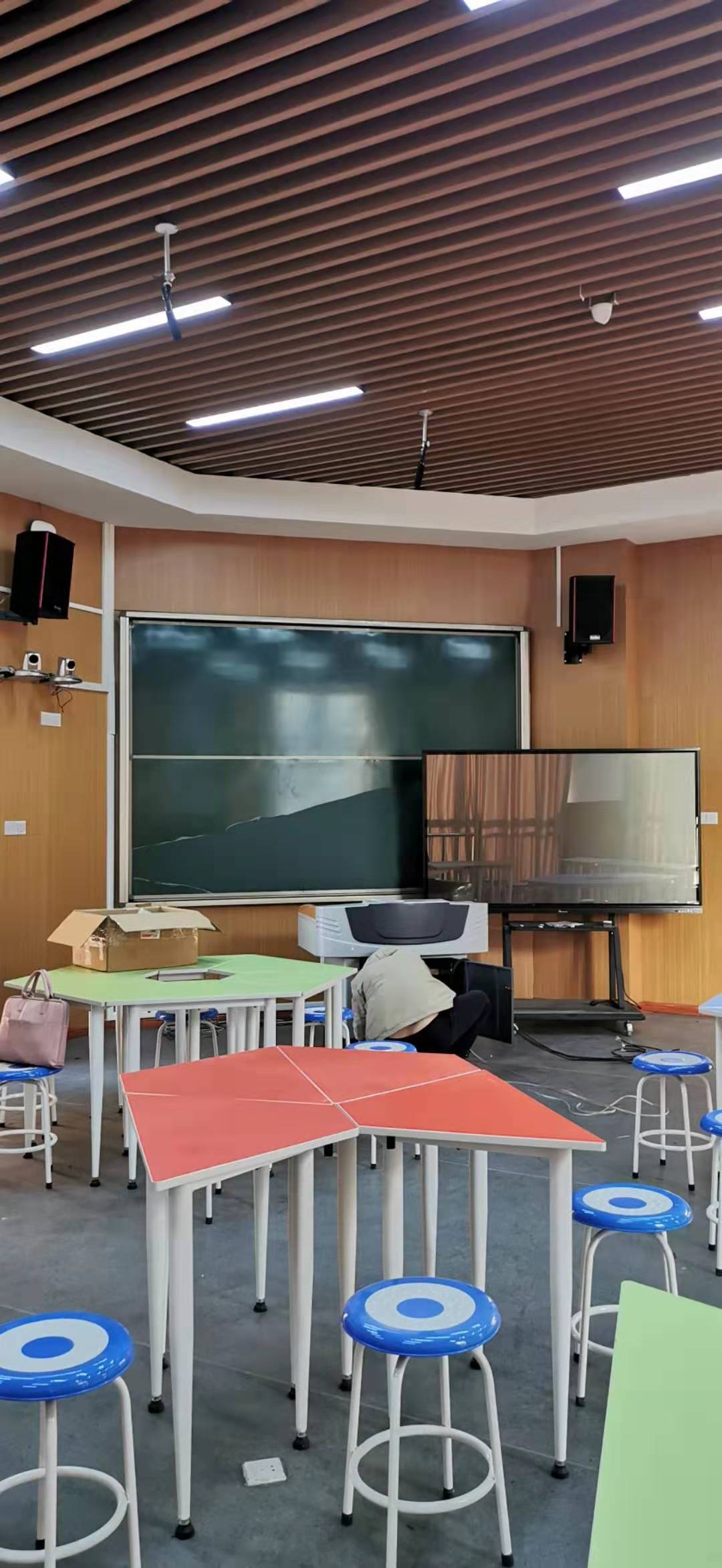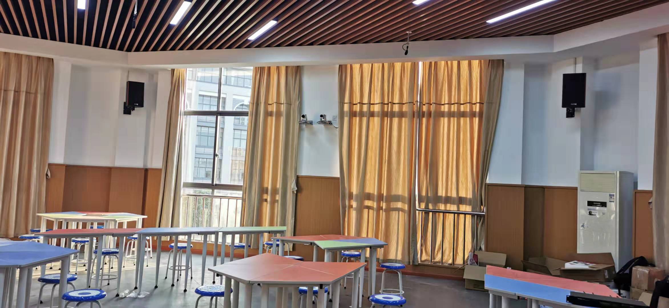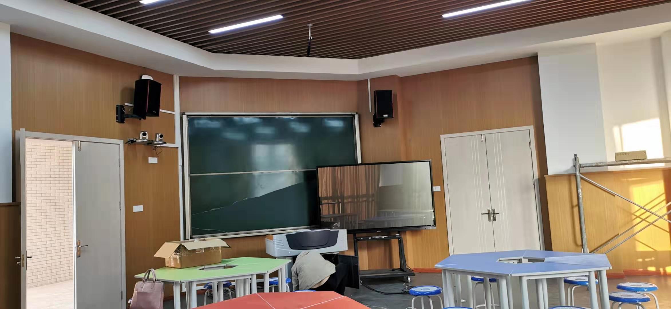 满足日常的教学、培训、会议及单位技术研讨等需求,采用了京邦电子(KING-BANG)会议系统、专业扩声系统、中央控制系统等组成的会议方案,成功打造了一个先进化、信息化、智能化的多媒体教室;