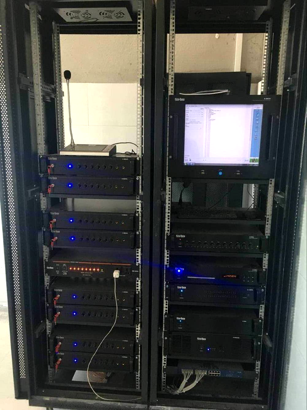 该学校校园广播系统实行分区控制并能联成一个整体控制。分区基本按照每幢楼层、年级、功能区一个分区。此外该校园广播系统具有背景音响和通知广播的多重功能。