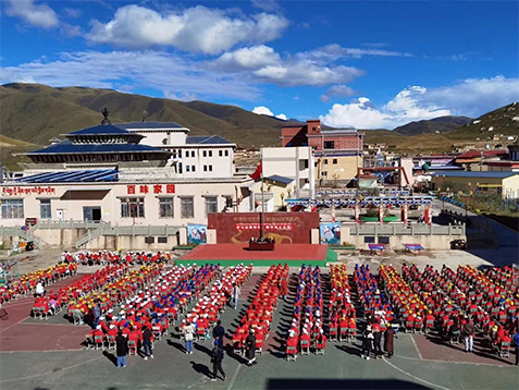 德格县竹庆镇中心小学始建于1978年,学校占地面积9112平方米,位于巍峨的雀儿山下,省道217旁,距离县城147公里。竹庆镇是四川省甘孜藏族自治州德格县下辖的一个镇,位于德格县境西北部,面积1079平方公里,常住人口约0.7万。其前身为竹庆乡,1962年置竹箐乡,同年协庆乡并入,1966年更名竹庆乡,同年改公社,1984年复乡。柯(柯洛洞乡) 三(三岔河)公路和马(马尼干戈)石(石渠县)公路过境。2014年1月,撤乡建镇,辖竹庆、扎东、更达、拉加、八色、档木、协庆、拥青、更隆9个村委会,属纯牧业镇,所在地海拔3980米,境内有竹庆寺、协庆寺两座著名寺庙。竹庆镇中心小学现有教职员工 53人,其中专任教师48人,后勤人员5人。教学班17个,共有学生840人。学校以“家”打造文化,培养师生以“爱家”做起,进而升华至“爱国”思想,图书室、电教室、实验室齐备,近年来,学校管理水平进一步增强,教育教学质量逐年提升,是一所牧区双语特色