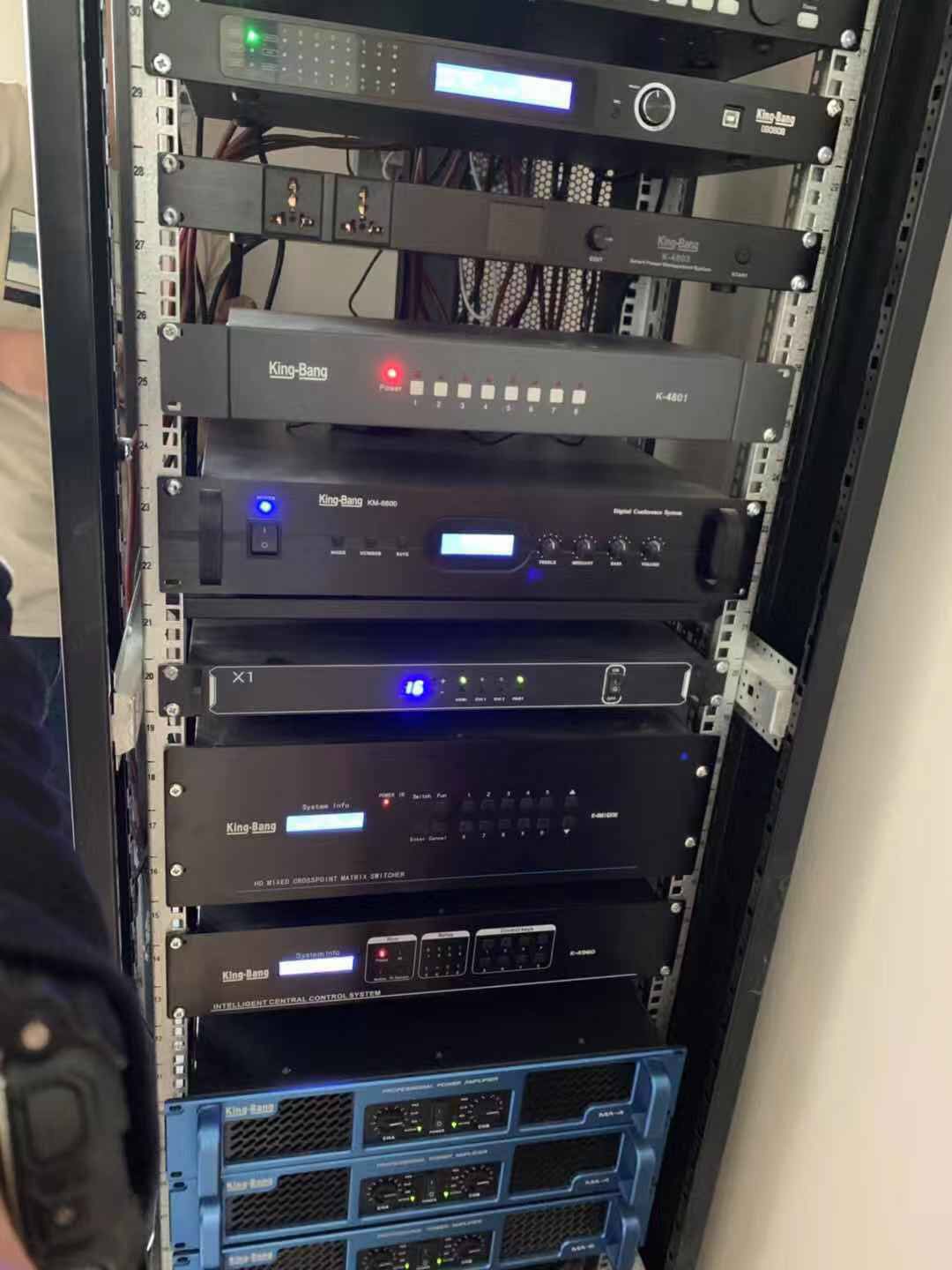 京邦电子(KING-BANG) 通过对会议厅布局环境分析,对音响设备进行合理的布置与连接,在此报告厅会议系统中可以利用扩声系统提高声源在接收者的声压和清晰度的扩声,通过电声设计去控制和改善多功能报告厅的音质,达到了会议扩音系统的目的:提高响度和声场分布的均匀度,改善报告厅的音质和提高音响效果。通过对会议环境的分析,选出的音箱设备,并对音响设备布的布局作了精心的设计,因此这套会议系统除了满足会议扩声系统可以达到提高响度,声场分布的均匀度,改善音质和提高音响效果目的外,还满足了整个音响系统声学指标设计的基本要求: