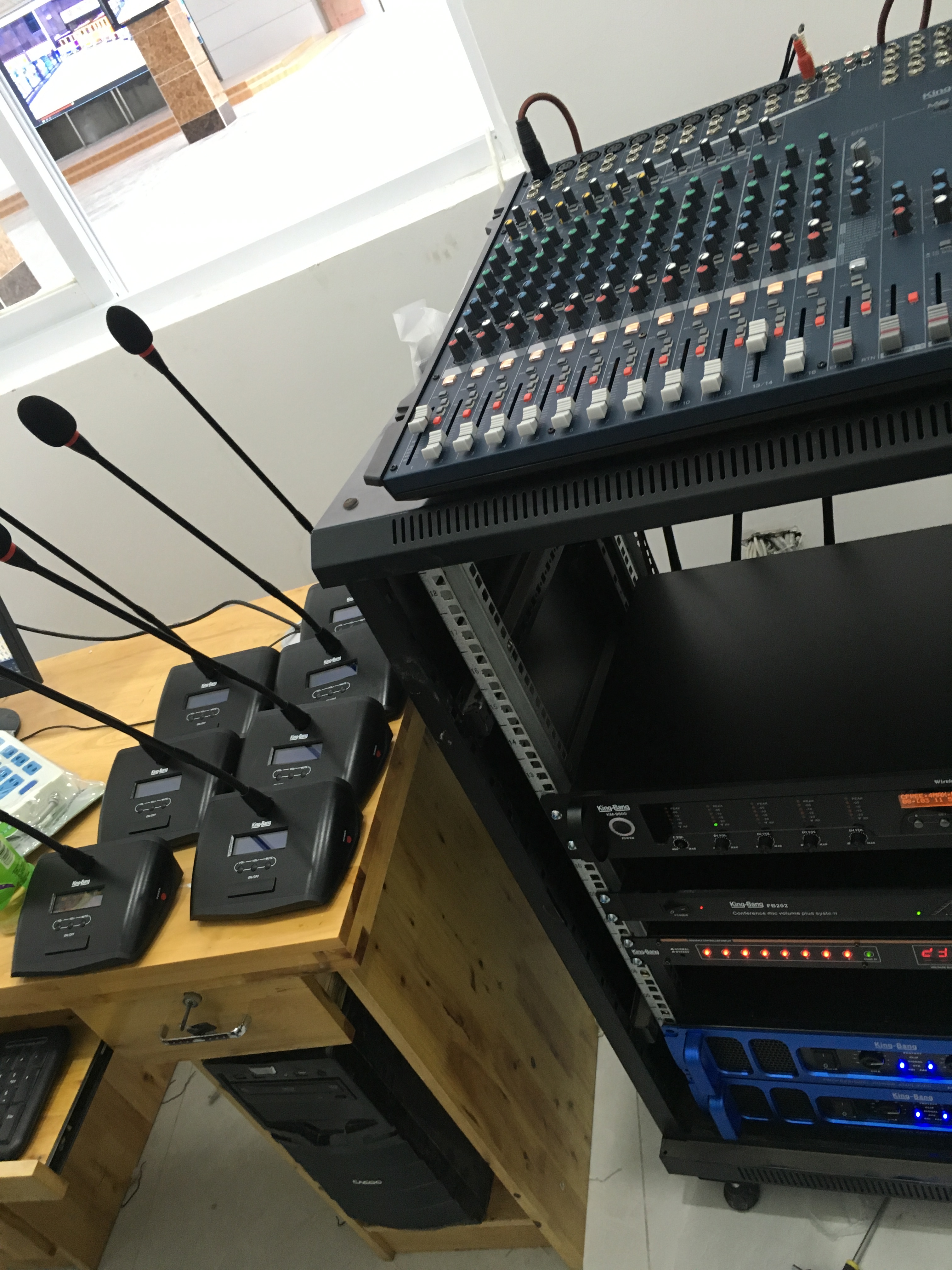 经过分析对比,再结合现场情况及客户的使用需求,京邦电子(KING-BANG)为项目设计了一套灵活方便的会议系统方案。以KM-9600系列为主导,搭配高保真的超心型指向电容会议话筒。主机可以设置“有声控模式”、“先进先出模式”、“后进先出模式”、“主席模式”、“全开模式”和“抢答模式”等发言模式,系统也可自动发言时间与定时发言时间,让负责会议的人员更加方便地管理与会人员的参与发言,会场发言更加稳而有序