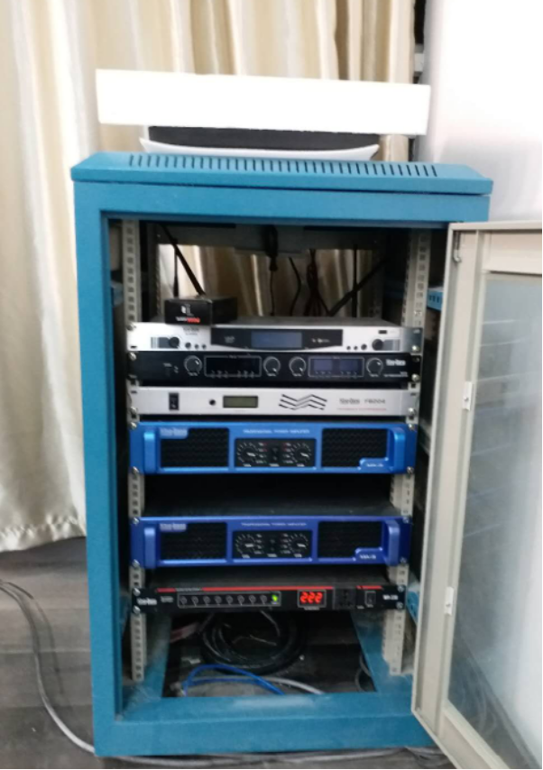 专业扩声系统简单来说就是把声音信号放大,主要由声源、音频处理设备、功放及扬声器系统组成。通过计算会议室的音响场地系数进行设计,保证会议室每个角落的声场听觉均匀,音响效果达到语言清晰、无失真、声场分布均匀。