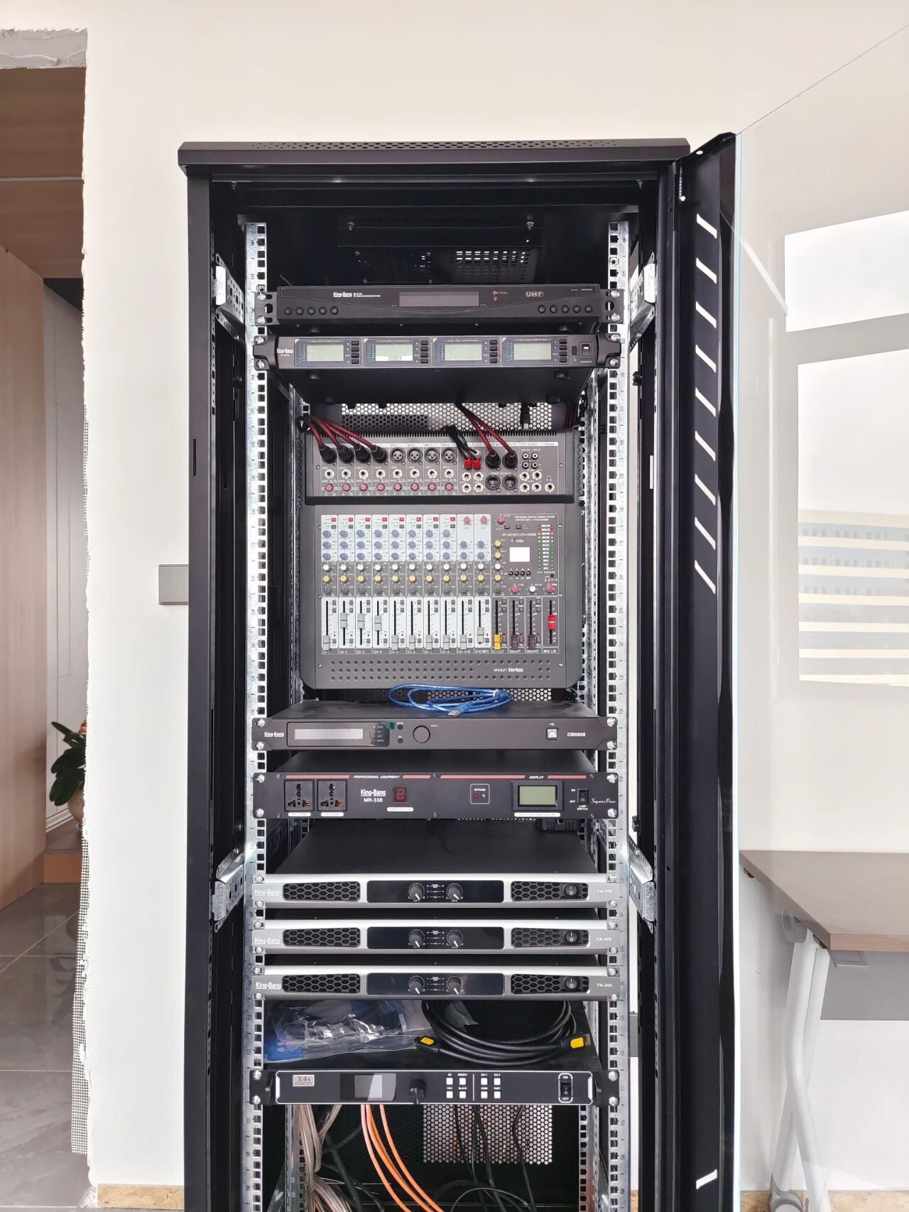 专业扩声系统简单来说就是把声音信号放大,主要由声源、音频处理设备、功放及扬声器系统组成。通过计算会议室的音响场地系数进行设计,保证会议室每个角落的声场听觉均匀,音响效果达到语言清晰、无失真、声场分布均匀。
