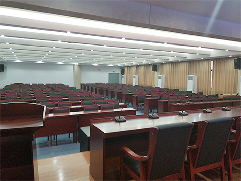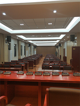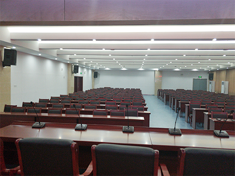 专业扩声系统简单来说就是把声音信号放大,主要由声源、音频处理设备、功放及扬声器系统组成。通过计算会议室的音响场地系数进行设计,保证会议室每个角落的声场听觉均匀,音响效果达到语言清晰、无失真、声场分布均匀。