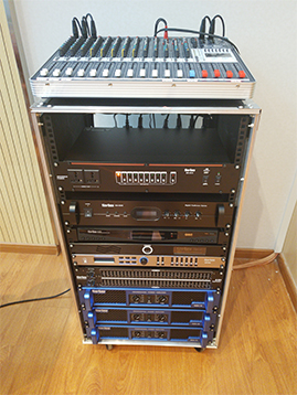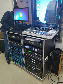 放大设备——指对经过调控设备混音输出、信号处理后的信号进行后级功率放大设备,这里指专业功率放大器;重放设备——指将经过后级功率放大器放大的音频信号进行电—声转换并释放表现出来人耳可懂的声频信号的设备,这里指扬声器;
