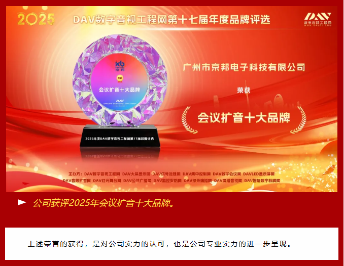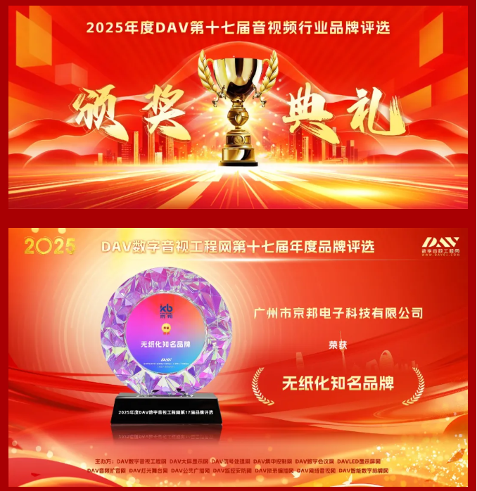 【喜报】京邦电子荣获2025年度DAV数字音视工程网三大权威奖项,助力赢得市场瞩目